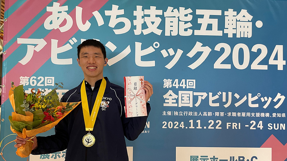 業務支援部の岡出慎之介さんは、東京都代表選手としてワード・プロセッサ種目に出場し、見事金賞(金メダル)を受賞しました。